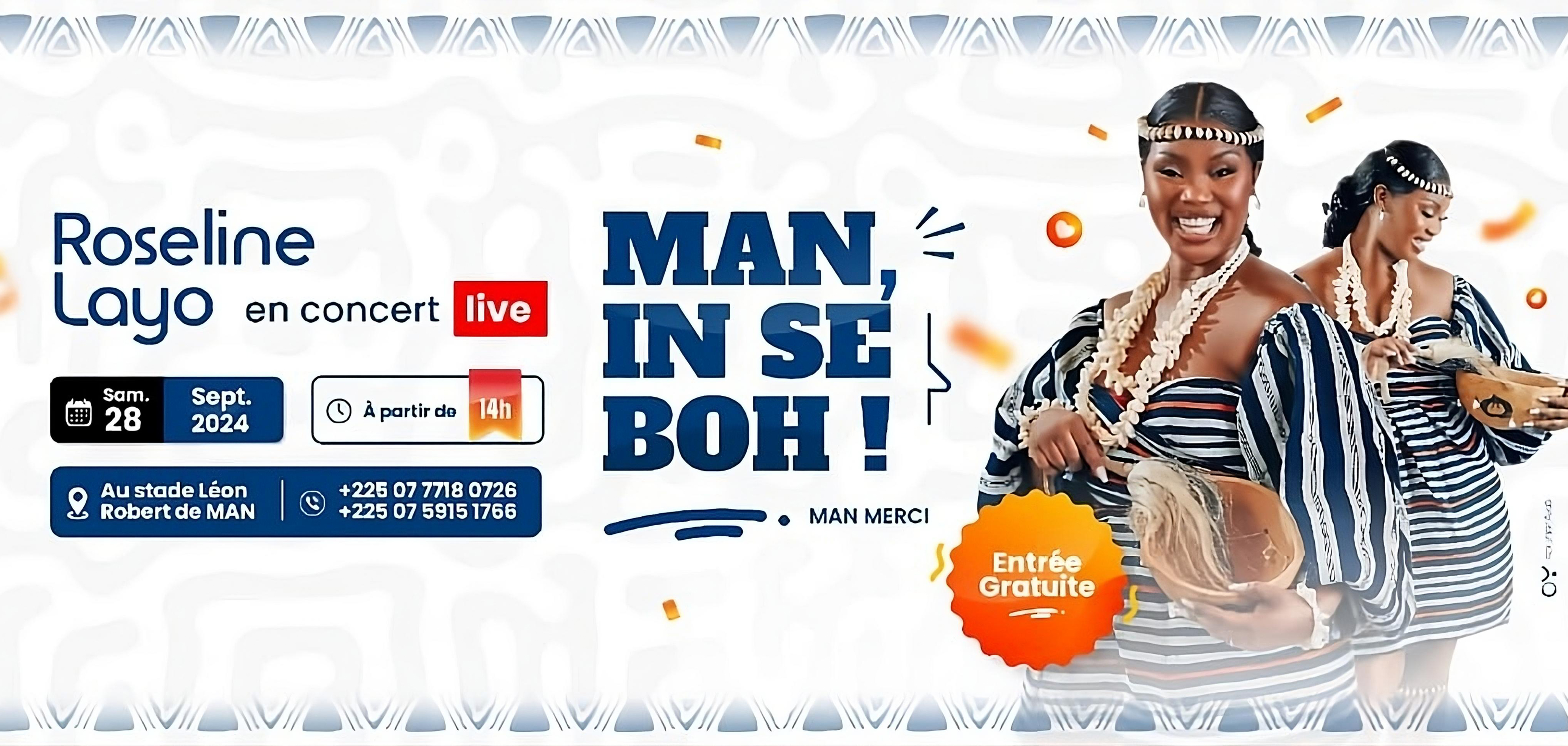 "MAN, IN SEBO" qui signifie en francais "MAN MERCI" est un programme événementiel riche et multidimensionnel initié par Roselyne Layo pour honorer ses origines Yacouba, célébrer la ville de Man, d'où elle est originaire surtout dire MERCI à sa communauté pour le soutien.