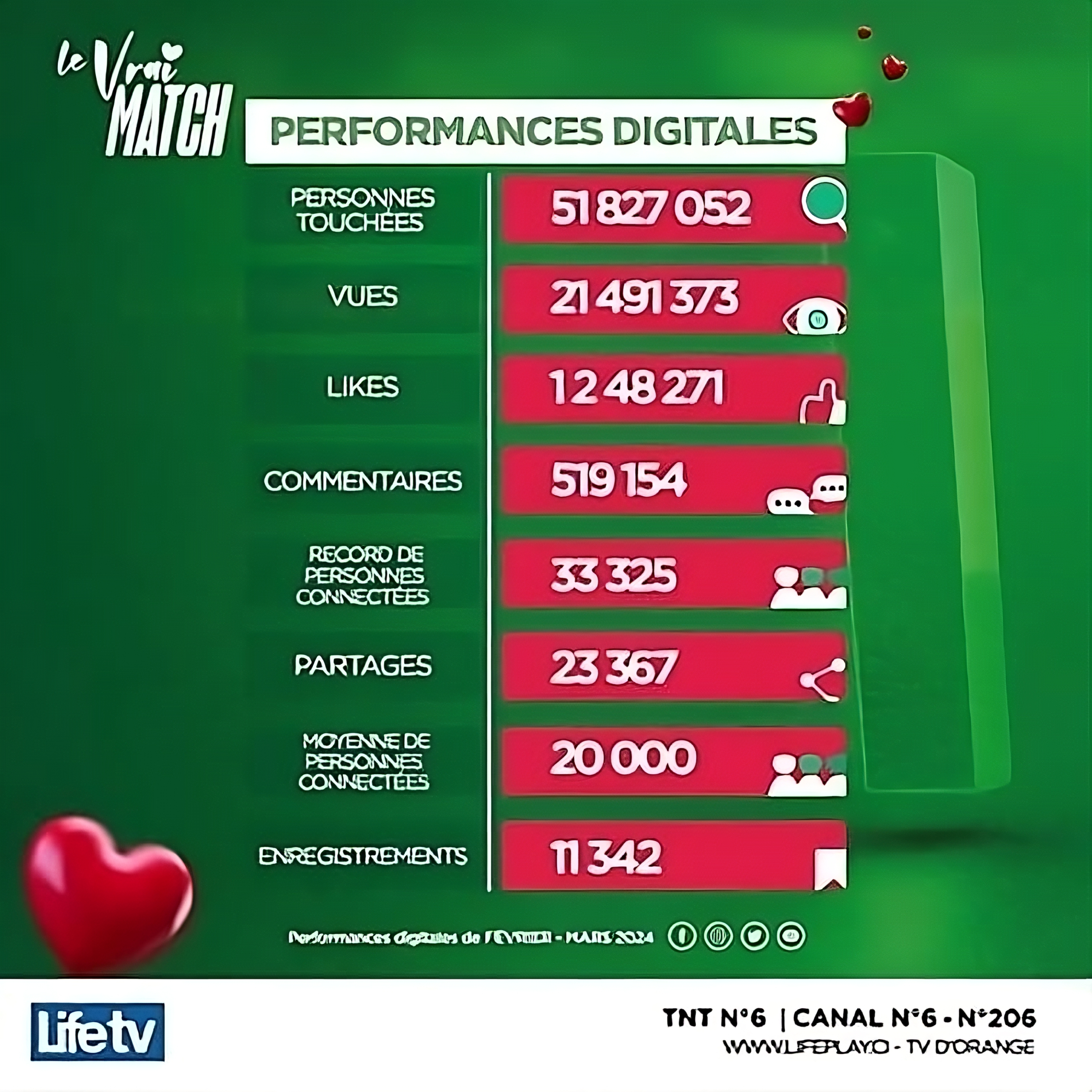 La stratégie autour du Vrai Match positionne aujourd’hui l’émission comme le programme leader de Life TV, avec un impact mesurable sur l’audience, la notoriété, l’engagement digital et l’attractivité commerciale.