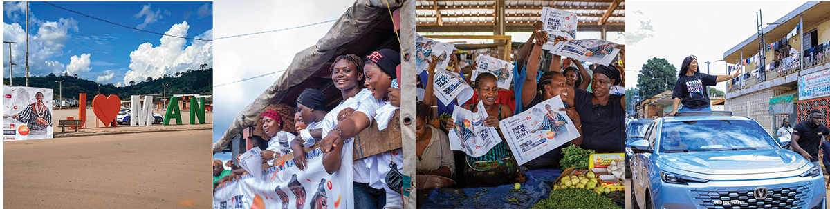 3. Caravane publicitaire : pour renforcer sa proximité avec la population, Roselyne Layo a mené une caravane dans les rues de Man, accompagnée d'un camion publicitaire d’un cortège de véhicules dans lequel elle était elle-même présente. Elle a personnellement invité les habitants à participer au concert, créant ainsi un lien direct avec son public. Des T-shirts et autres gadgets promotionnels ont été distribués tout au long de la caravane pour maintenir l’engagement et l’intérêt de la communauté.